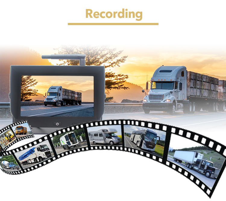CM-709MDW-3 Full touch 7 inch 4 channels 1080P wireless car camera monitor system is easy to install without wiring, saving installation time and labor cost. Monitor features full touch screen and DVR recording function. Camera is sturdy durable features IP69K & HD night vision, providing clear view in any special environment. Within the open area the maximum transmission distance can reach 656ft, with stable signals & low latency. If you are looking for such high quality China wireless car camera monitor system for your fleet, please contact sales@aotop.com!